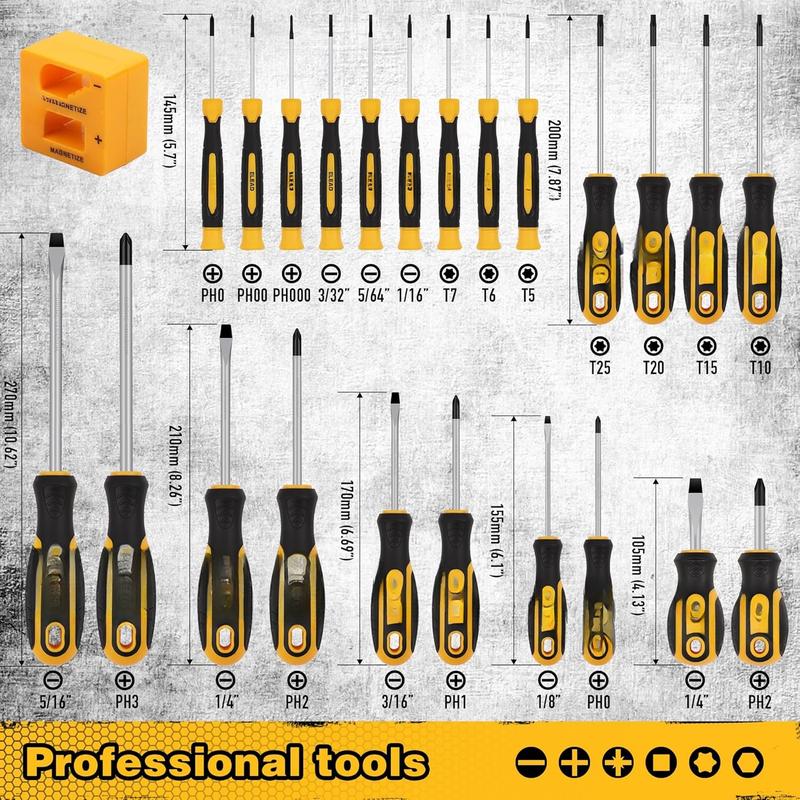Ultimate Toolset: Durable Screwdrivers, Magnetizer Included, for Complex Repairs and DIY Projects, with Grip.